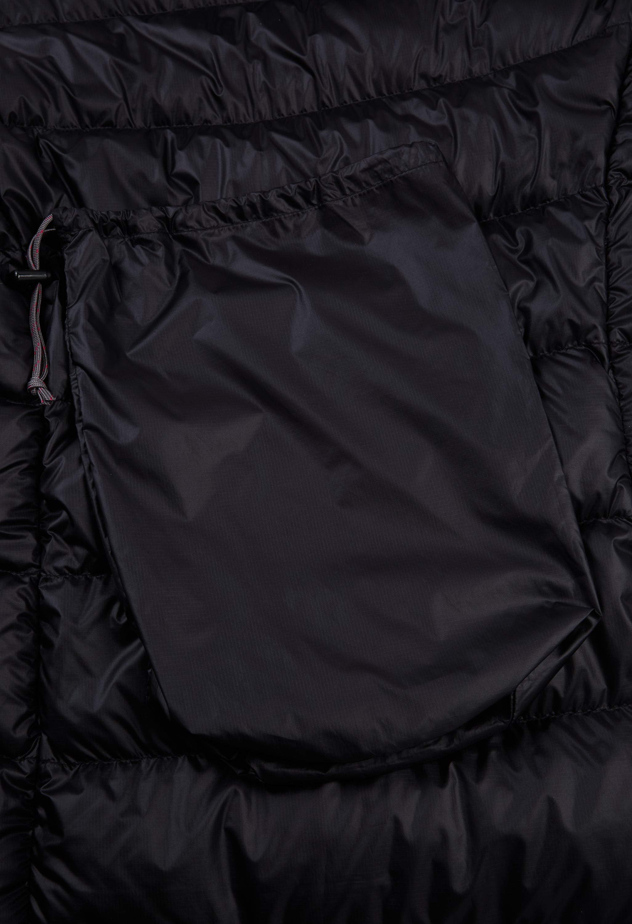 - Hem drawcord can be adjusted through the front pockets