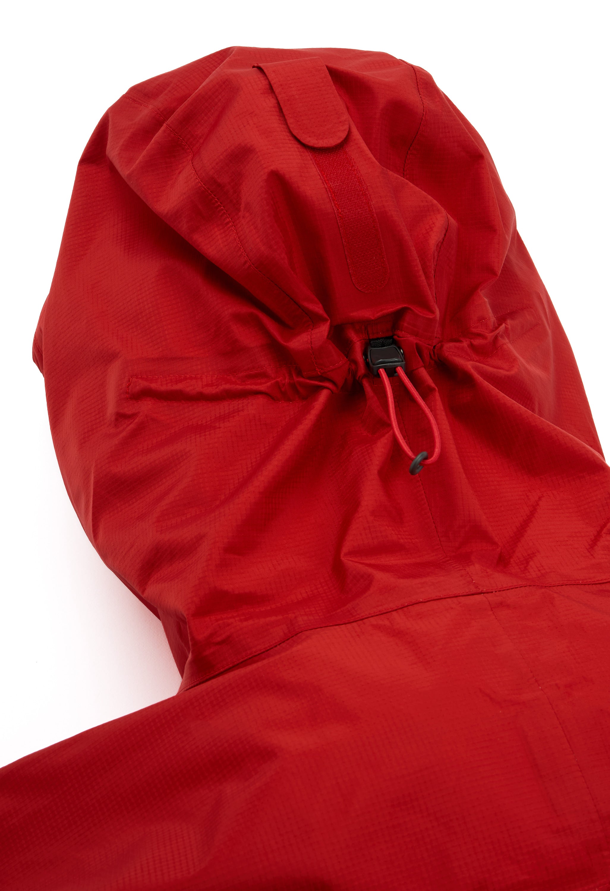 - Hood rolls up with a hook-and-loop tab fastener