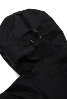 - Hood rolls up with a hook-and-loop tab fastener